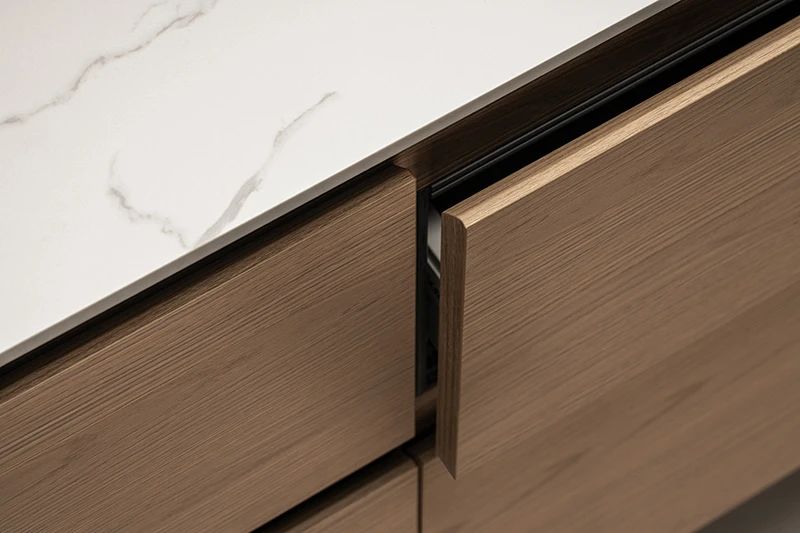 我们将经典木榫与现代工艺完美结合,圆棒螺纹木榫结构随温湿同胀同缩,历久弥坚;倍量排孔使得连接孔密度翻倍,让柜体承重稳固加倍;配合全系材质,让柜体抗形变系数提升70%*。当清晨厨房与深夜书房同样需要对抗地心引力,我们以毫米级精密工艺,让烹饪与伏案都成为笃定的艺术。